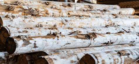 活用が難しいとされる小径木を、建築・土木資材に適した形に加工。資源を無駄なく有効利用しています。