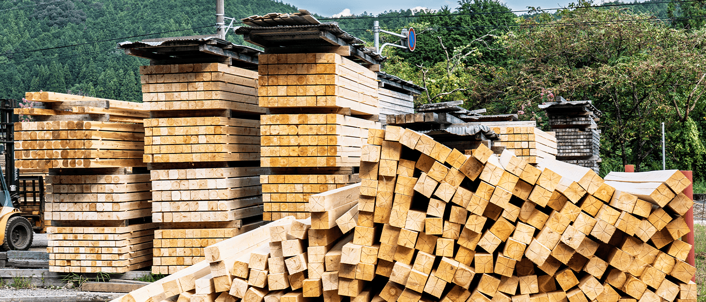 当社は、小径木を活用した小型サイズの製材を得意とし、住宅や土木工事など幅広いニーズに対応しています。