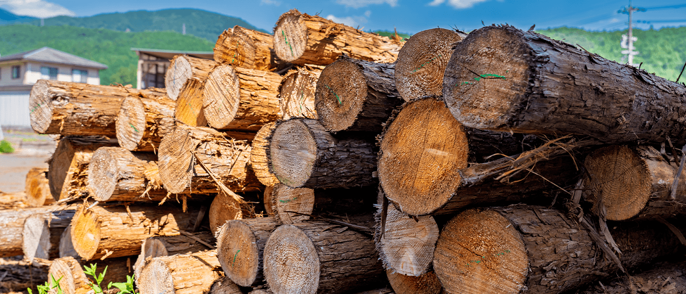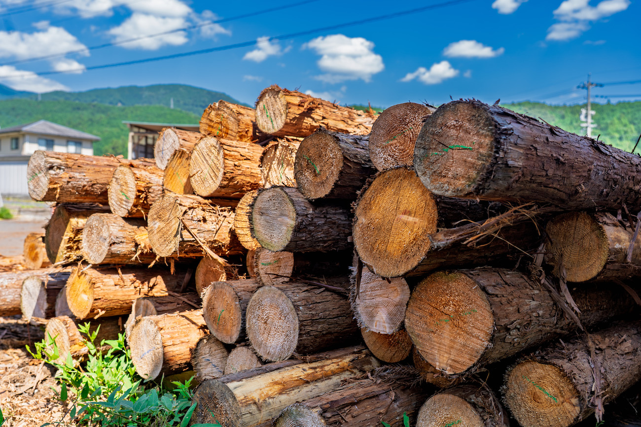 井森建設は、中津川市の製材所として、地域の山林で伐採された丸太を建築材や土木資材として供給しています。